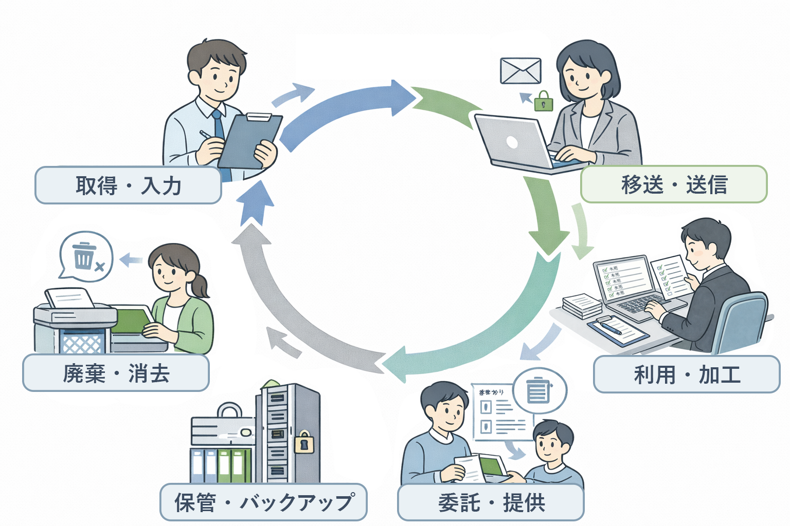「個人情報ライフサイクル」とは、個人情報が取得されてから廃棄されるまでの一連の流れを指します。